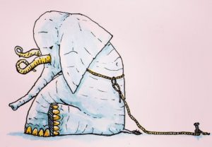 Örneğin; yavru filler bebeklik dönemlerinde bir ip aracılığıyla demir bir çubuğa bağlandı. Henüz bebekken güçsüz olan filler ne kadar uğraşırsa uğraşsın bu ipten kurtuluş sağlayamadı ve bir süre sonra durumu kabullendi. Yetişkinlik dönemlerinde güçlenen filler, aynı ipi efor sarfetmeksizin koparabilecekken bebeklik döneminde yaşadığı olumsuz tecrübeler sonucu bir kez olsun dahi bunu denemedi.